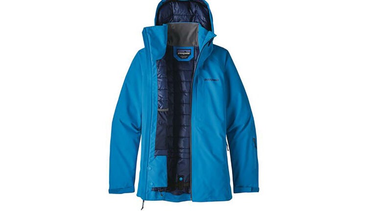 The Patagonia Insulated Powder Bowl Jacket ($479) stands up to whatever winter throws at it. The jacket features a watertight exterior made of 100 percent recycled polyester Gore-Tex fabric and interior polyester insulation. Water beads off this baby! It also has watertight zippers, a removable, helmet compatible hood, adjustable powder skirt, lots of pockets, and a back hook to attach the equally hardworking Patagonia Insulated Powder Bowl Pants ($379).