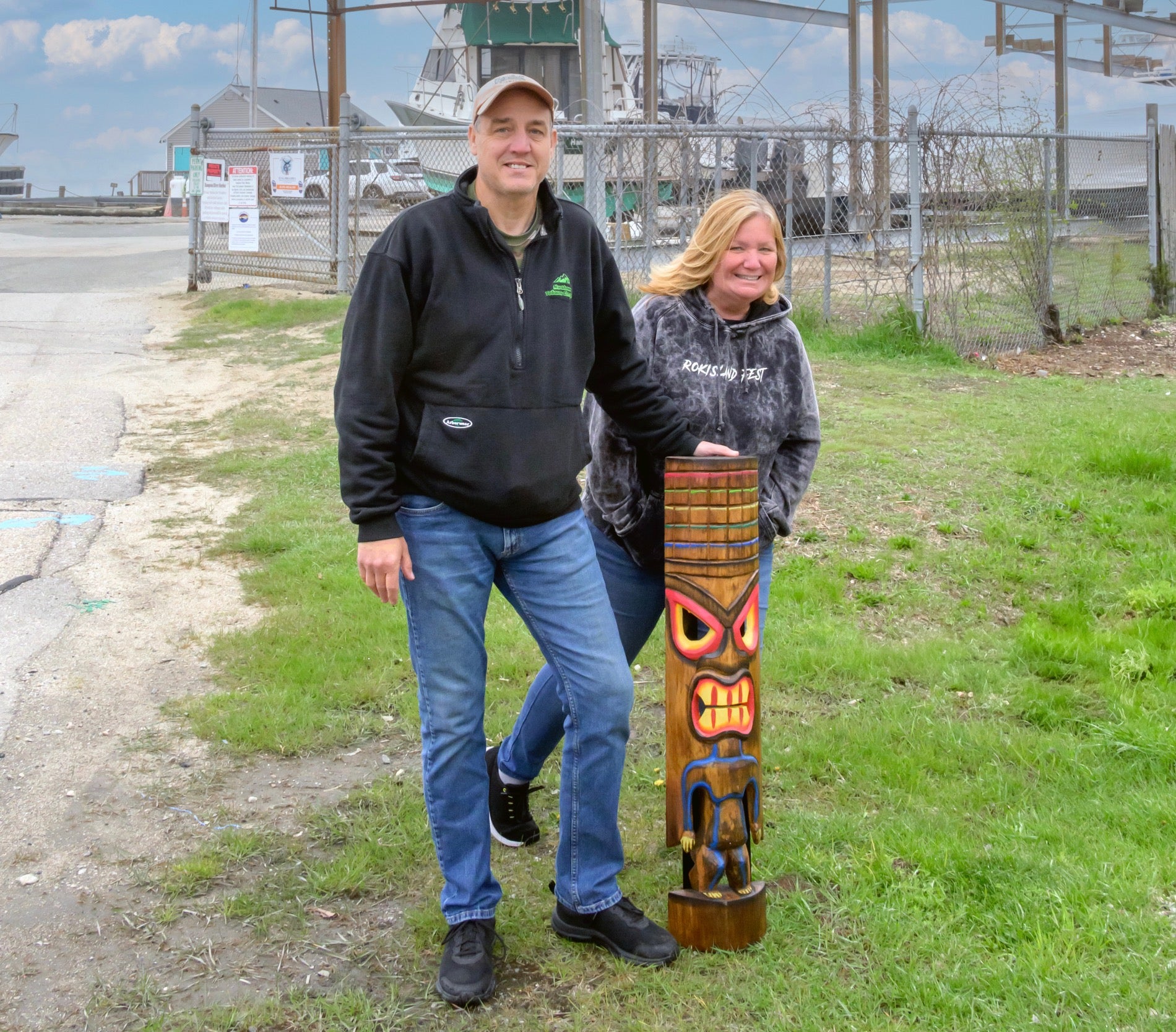 The cart has scrolling LED signs, solar torches, music, and a mascot named Tiki Pete, a totem pole perched on the back rail named during a social media contest, Sonia said.