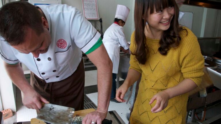 On campus we are a few among many. The institute has some 4,000 students but is part of the much larger, 8,000-student Sichuan University of Tourism. Offering studies in a variety of fields besides food arts — hotel management and foreign language studies, for example — the university serves the province’s growing tourist industry.