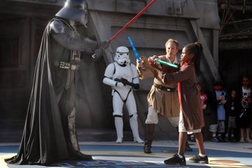 At the Hollywood Studios version, at Walt Disney World in Lake Buena Vista, Fla., kids between the ages of 4 and 12 can participate in the Jedi Training Academy, a 20-minute training show that takes place adjacent to the ride. Participants will don Jedi robes and learn light saber skills in the event some Stormtroopers might show up (Spoiler alert: they do).