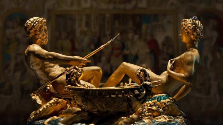 The Kunstkammer’s symbol is a saliera, or saltcellar, crafted by Benvenuto Cellini in the early 1540s. “Cellini made a lot of works in gold, but this is his only surviving, fully authenticated piece,’’ Bischoff says. The sali-era, valued at more than $60 million and dubbed “the Mona Lisa of sculptures,’’ is a richly ornamented allegorical representation of the earth. “Days, winds, earth, water; the whole world is symbolized in this object,’’ Bischoff says. What sealed the saliera’s status, she adds, was its theft in 2003. It vanished for three years before being recovered.