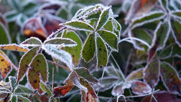 An early morning frost covered the foliage of changing leaves at the base of Mount Washington in Bretton Woods, N.H. Thousands of tourists are expected in New England this weekend to look at the changing colors of autumn during the Columbus Day holiday.
