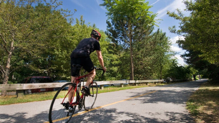 Bikers on the East Bay Bike Path in Rhode Island.