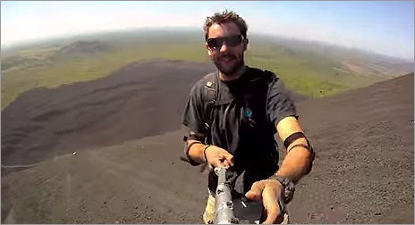 Traveler Alex Chacon gave away all of his things and traveled 125,946 miles across 36 countries for 600 days using five motorcycles to create the eye-popping “Around the World in 360 Degrees’’ viral video below. He placed a GoPro camera on a stick to capture the 360-degree selfies, which also highlight his adventures through the Americas, Asia, and Europe (we love the lion shot!).