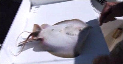 He put the stingray on the filleting table, intending to use it for bait. That’s when he noticed an extra stinger hanging out. Conger’s dad pushed down on the stingray and a baby popped out. And then, another!