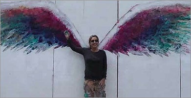 Why are folks so touched by the wings? As one fan, Ed Glaser, posted to her Facebook page, “Your wing installations are cool. Hope they will promote peace, hope, and a sense of community involvement.’’