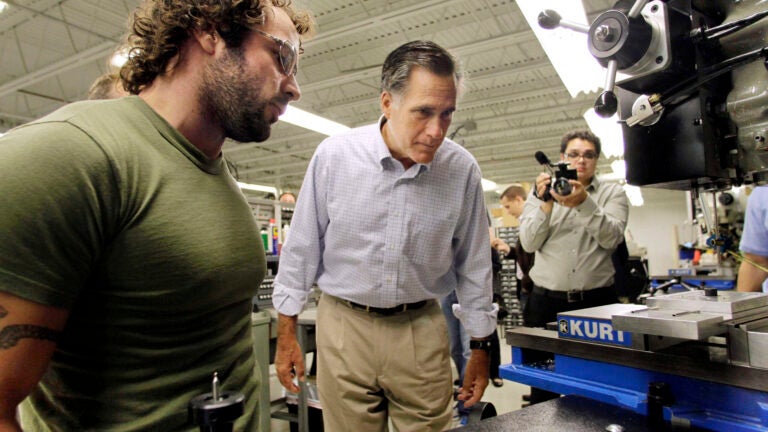 “I think understanding how the economy works by having worked in the real economy is finally essential for the White House, and I hope people recognize that,’’ Romney told reporters after touring and addressing employees at a small manufacturer in this Manchester suburb.