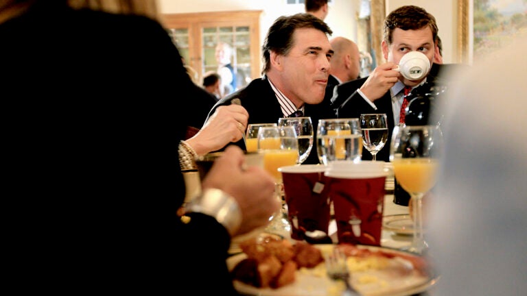 BEDFORD, N.H. – Texas Governor Rick Perry brought his nascent presidential campaign back to New Hampshire this morning, trying to emphasize economic themes before a crowd hungry to get a taste of the newest Republican candidate in the race.
