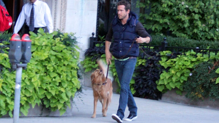 Actor Ryan Reynolds, in town filming the paranormal action movie “R.I.P.D.’’ with Jeff Bridges and Kevin Bacon, walked his dog around Back Bay on Monday. Bacon has also been spotted sightseeing around the city. Over the weekend, he tweeted a picture of the General Hooker entrance at the State House and asked his fans, “Where do special hookers enter?’’