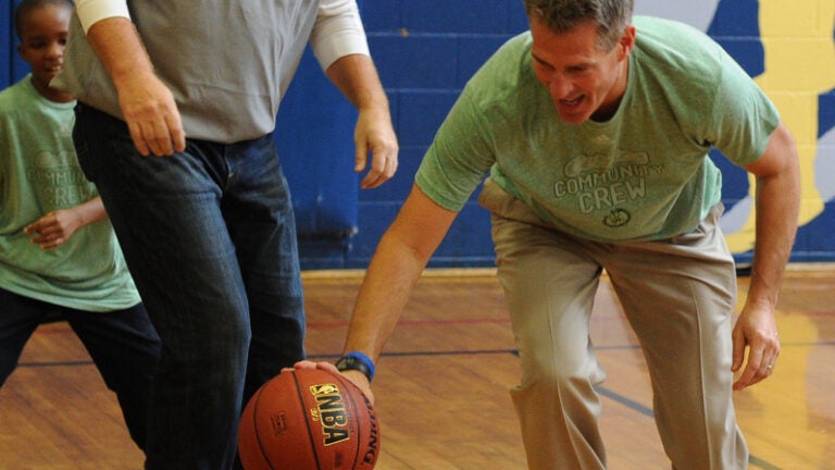 Senator Scott Brown and Governor Deval Patrick joined Celtics brass, including Danny Ainge and Steve Pagliuca, yesterday to launch an initiative called the Celtics CommUNITY Crew. The new crew spent the day refurbishing the Mattahunt Elementary School and Community Center in Mattapan – and, of course, playing a little basketball.