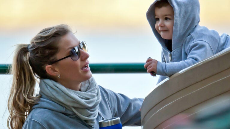 Supermodel mom Gisele Bundchen frolicked with son Benjamin at a playground in Boston today, and snapped a few pics of the pigskin progeny as he made his way down the slide. Tom Brady’s bride was recently blasted by Brazil’s Ministry for Women, which thinks a new ad campaign featuring the leggy, lingerie-clad supermodel is sexist.