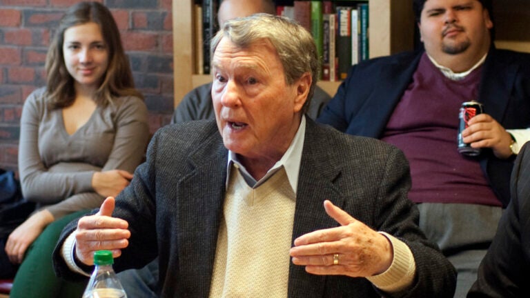Jim Lehrer, former anchor of PBS’s “NewsHour,’’ was at Harvard today where he chatted with students about his experiences moderating presidential debates. He’s done eleven in all, including most recently the debate between senators Barack Obama and John McCain in 2008.