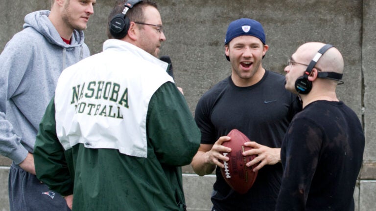 Pats’ Julian Edelman schools Anthony ‘Spaz’ Parziale with the help of Ryan Mallett