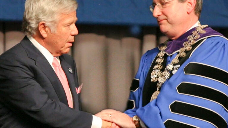 Pats owner Robert Kraft was emotional Saturday as he accepted an honorary degree awarded posthumously by Brandeis to his late wife, Myra, at the school’s commencement. . . . Hall of Fame running back John Riggins was at the Pine Street Inn Sunday, where he served venison tacos to the homeless as part of the Sportsman Channel’s “Hunt.Fish.Feed.’’ program that uses game meat and fish donated by sportsmen to feed the hungry. . . . Gus and Scout – the five-piece band fronted by Gus Wenner (son of Rolling Stone magazine founder Jann Wenner and ex-wife Jane) and Scout Willis (daughter of Bruce Willis and ex-wife Demi Moore) – performed at Cafe 939 Friday. The duo, both students at Brown, drew a few familiar faces, including Berklee president Roger Brown and Peter Wolf, whom Gus Wenner referred to as his “godfather,’’ adding “Peter’s in the back of the room, but you can’t see him because he’s dressed in black.’’ . . . Former Bruin Marco Sturm was spied at the InterContinental Hotel Sunday having breakfast on the patio at Miel. . . . Flack George Regan hosted a cocktail party for former police commissioner Bill Bratton and wife Rikki Klieman at his place in Marina Bay. Guests included Channel 4 GM Ed Piette, WCVB’s Bianca de la Garza, Roger Berkowitz, Steve and Roberta Weiner, and Mary Clivio.