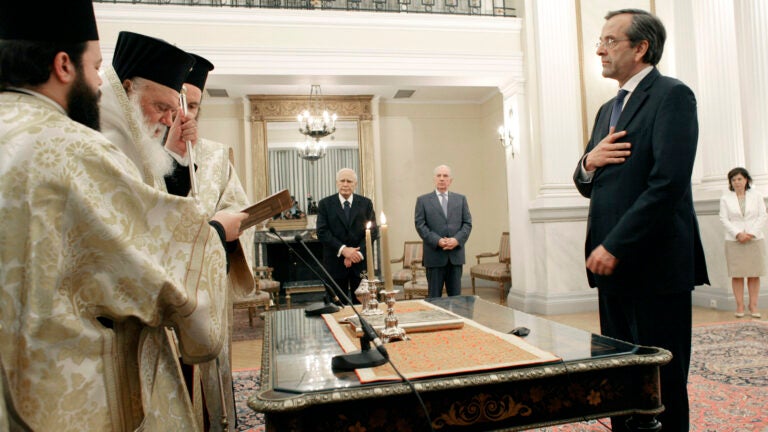 Antonis Samaras, an Amherst and Harvard Business School graduate, was sworn in Wednesday.