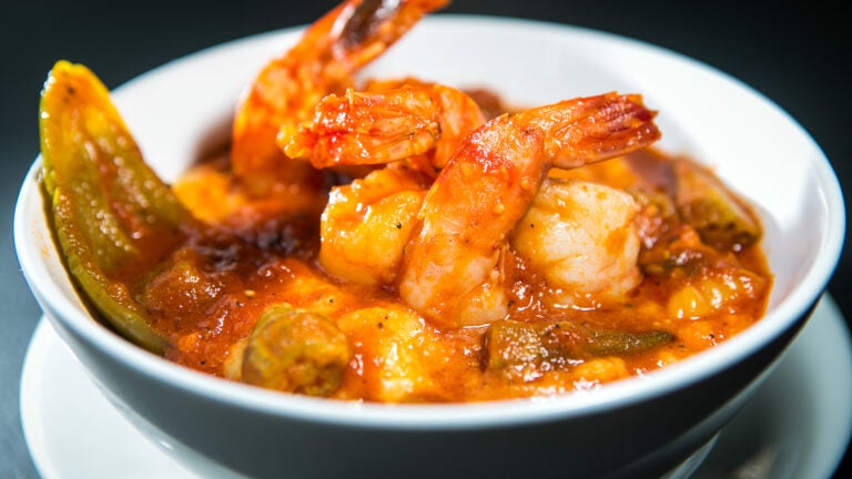 Crab meat gets added to deviled eggs, a good idea that yields a strange, chunky filling and not enough crab flavor. Leftover macaroni and cheese, one of more than a dozen sides, may wind up fried into fritters — they’re not hot when served, but even at room temperature, a macaroni-and-cheese fritter can be hard to resist. (Unfrittered, the macaroni is standard issue, on the side of bland but serving its cheesy purpose.) “Cold green soup,’’ described as green tomato gazpacho, looks like swamp water. The algae turn out to be herbs, and the predominant flavor is watercress; we dredge up a mass of pink rings tangled together, drowned pickled onions. A server notices our lack of interest in the dish, inquires, and removes it from the bill.