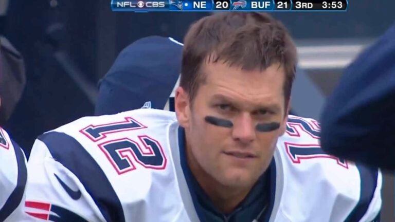 Among the more entertaining moments of Sunday’s Patriots game was when the CBS cameras captured Tom Brady cursing on the sidelines. The QB had just scored the tying touchdown by running — more like staggering — into the end zone, and the cameras lingered long enough to see him utter “[expletive] you, [expletive].’’ Several sports websites posted clips of the comment Monday. Talking to WEEI’s John Dennis and Gerry Callahan, Brady was asked about the vulgarity. “The whole world was reading your lips. Who were you directing it to – the [Buffalo] Bills, the fans?,’’ said Callahan. Brady paused. “I’d rather not say. It wasn’t the fans and it wasn’t the refs or anything like that,’’ said Brady. “It was an emotional thing. I was just fired up.’’ In his defense, Brady throws a lot of TD passes, but rarely does he get to cross the goal line himself.