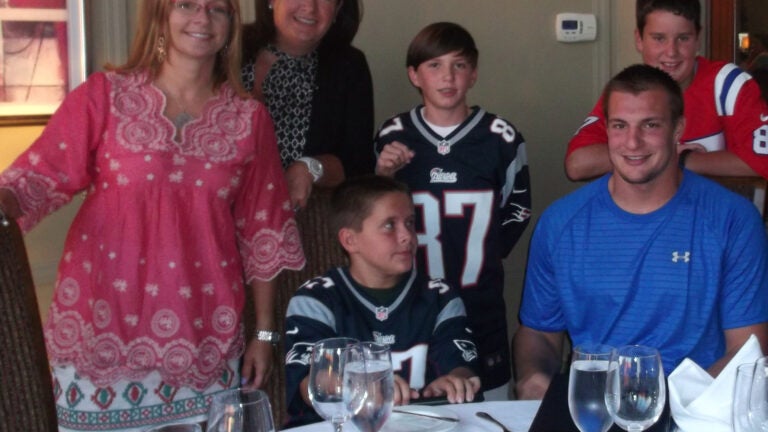 Nursing his injured arm back to health doesn’t prevent Patriots tight end Rob Gronkowski from eating. Dinner with Gronk was one of the items at Good Sports’ recent Legends of the Ball Auction, and the big guy sat down with the lucky winners this week at Davio’s at Patriot Place. The Marvan and Charron families of Wellesley were suitably impressed with the pass catcher, who chatted with everyone about the coming season.