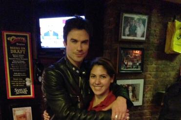 “Vampire Diaries’’ star/environmental activist Ian Somerhalder was in Boston on Tuesday to finish shooting “Years of Living Dangerously,’’ a docu-series about climate change that will air on Showtime next year. After Somerhalder posted his whereabouts on Instagram and Twitter, local fans responded with excitement, including Allie Raich, who asked, “Ian Somerhalder is somewhere in Boston. How am I supposed to go to class??,’’ and Tiaundra Loren Smith, who tweeted, a bit more emphatically, “Ian Somerhalder is in Boston!!!!! Ahhhhghhhhhhhhhh!!!!!’’ We’re sure those ladies are just excited about environmentalism. “Years of Living Dangerously’’ will also feature Jessica Alba, Olivia Munn, Boston’s own Matt Damon, and, according to the Internet Movie Database, former Red Sox star Nomar Garciaparra. During Somerhalder’s visit, he stopped by Cheers and posed for a photo with hostess Allix Kallini. She reports that he kissed her on the head — and that she might not wash her hair for a while.
