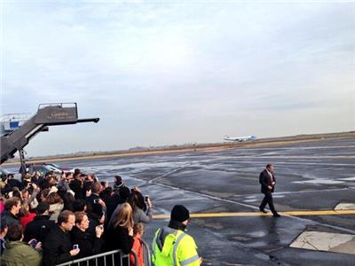 Obama landed at 2:46 p.m. at Logan International Airport. He will speak about the Affordable Care Act at Faneuil Hall around 4 p.m., according to a statement from the White House.