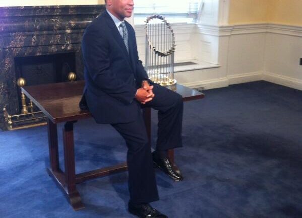 Massachusetts Governor Deval Patrick has acknowledged he isn’t the world’s biggest baseball fan. But he smiled broadly and donned a Boston Red Sox cap today as he welcomed the 2013 World Series trophy to the State House.