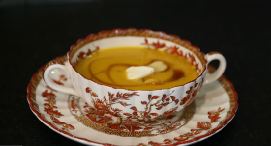 5. Mix crème fraîche and maple syrup in a small bowl. Serve soup topped with maple crème fraîche and chestnuts.