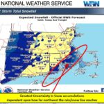The forecast could still change in the next 24 hours. The weather service said the greatest uncertainty for snow accumulation is being caused by the question of how far northwest the rain/snow line will extend and fall.