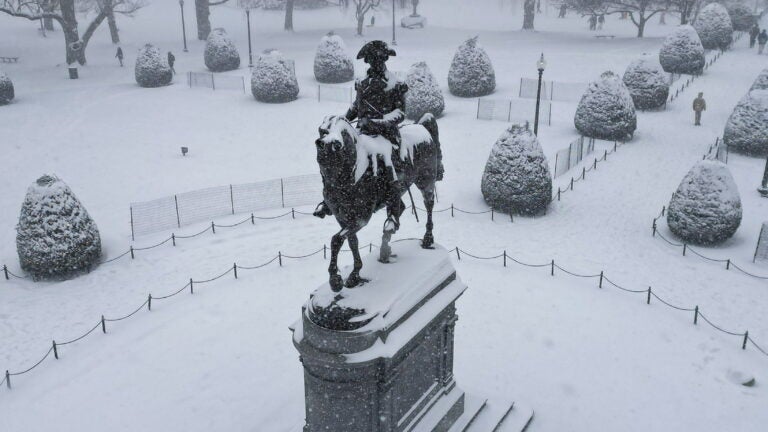 This weekend’s winter storm blanketed Boston Common and the Public Garden with snow as it swept across Massachusetts.