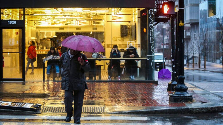 Tuesday will be warmer than Monday, but it will be wet. Expect rain showers throughout the morning and afternoon. There’s a chance for some areas to see occasional snow showers, but no more than a coating is expected in the Boston region. Highs will rise into the 40s during the day with some spots nearing 50 degrees.